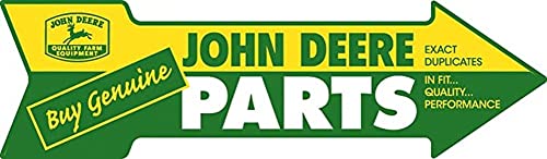 Metal sign in attractive arrow shape. Three color with vintage John Deere logo. Made in USA!