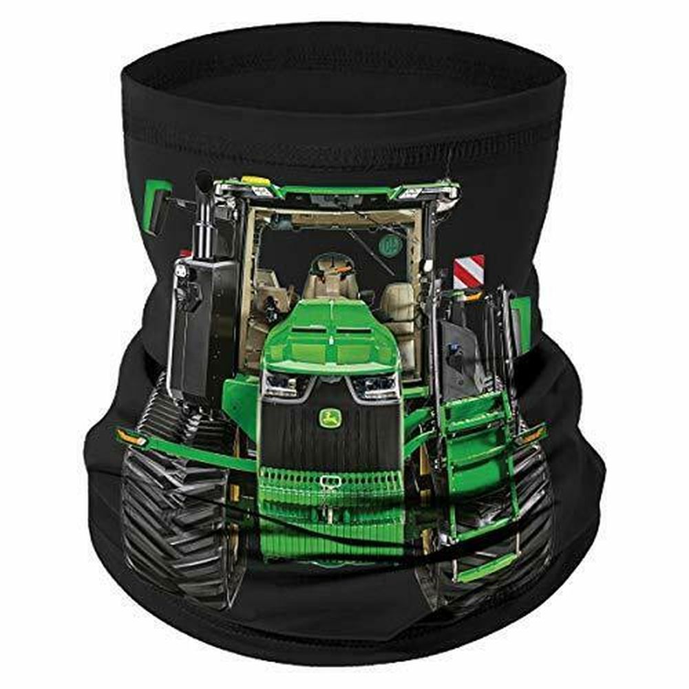 85% Polyester. 15% Spandex. Black with Tractor. One Size Fits Most. This is a Licensed John Deere Product