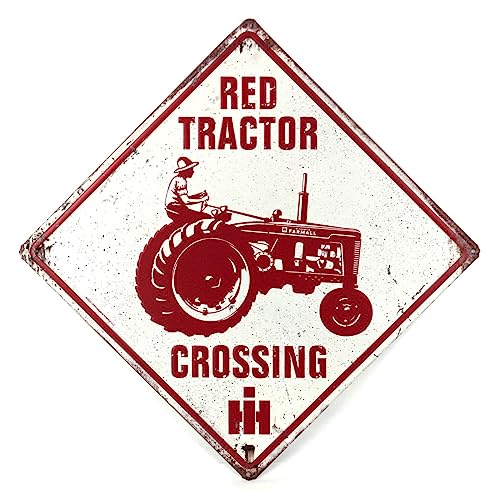 IH Red Tractor Crossing Tin Sign, 14in x 14in 42059