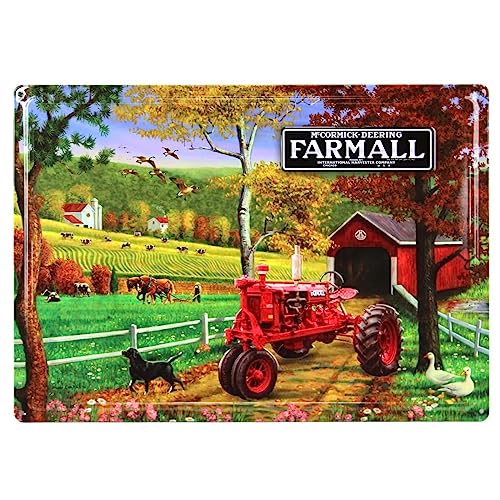 McCormick-Deering Farmall Tractor Covered Bridge Scene Tin Sign, 17in x 12in 42005